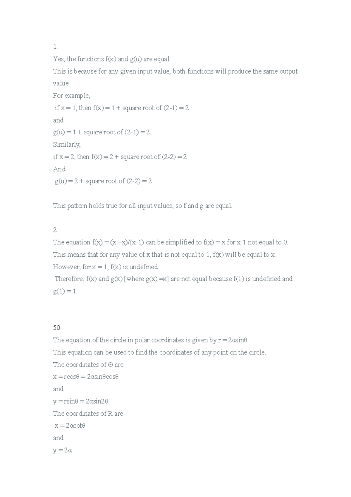 Calculus - Functions and limits - 1. Yes, the functions f(x) and g(u ...