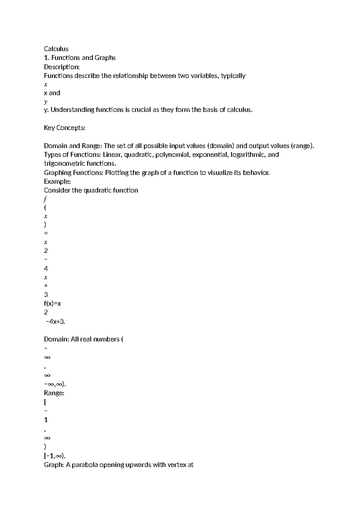 Calculus simple note - Calculus Functions and Graphs Description ...
