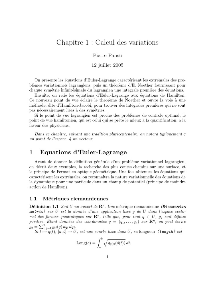 Calcul Variationnel et Physique | PDF | Calcul des variations ...
