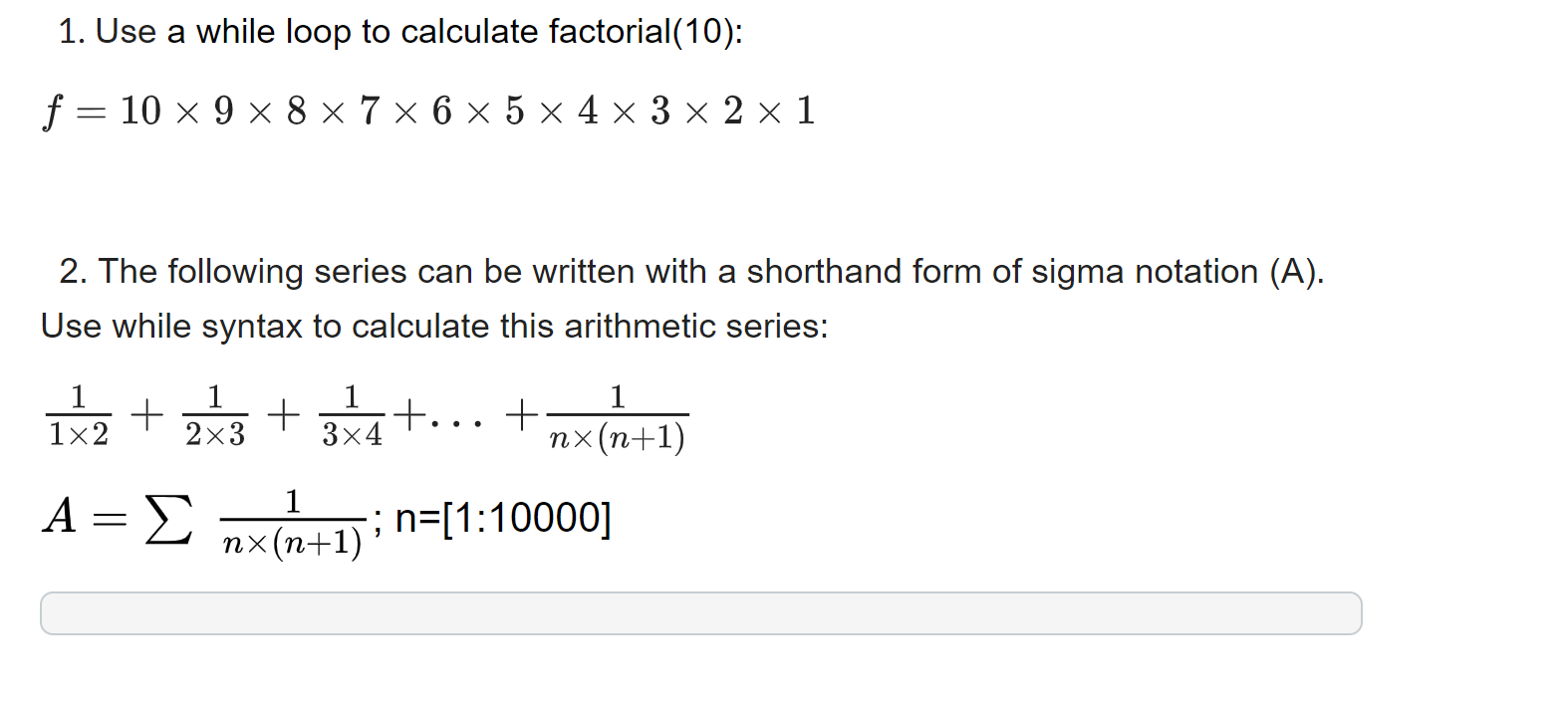 Solved 1. Use a while loop to calculate factorial(10): | Chegg.com