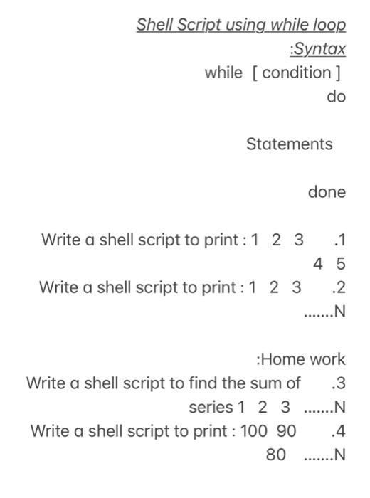 Solved Shell Script using while loop :Syntax while ( | Chegg.com