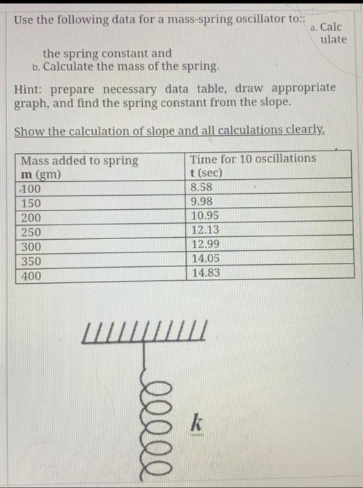 Solved calculate the spring constant and calculate the mass | Chegg.com