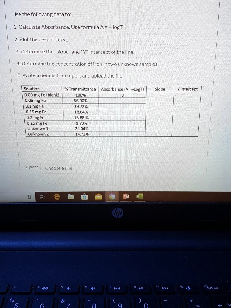 use the following data to 1 calculate absorbance use formula a logt 2 ...