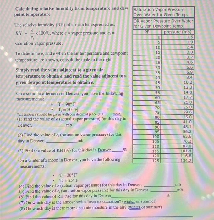 Solved Calculating Relative Humidity: Use the graph (and a | Chegg.com