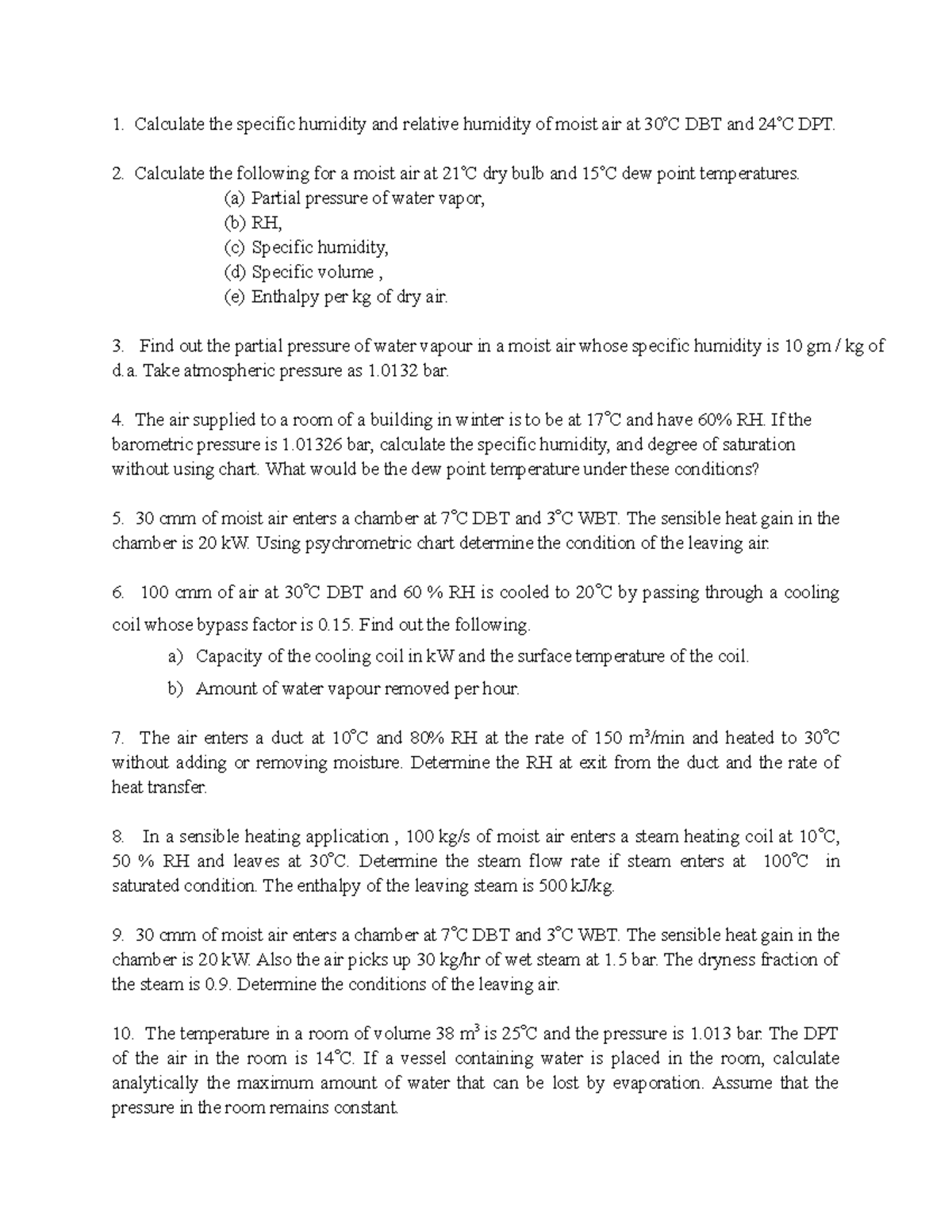 assignment calculate the specific volume relative humidity enthalpy and ...
