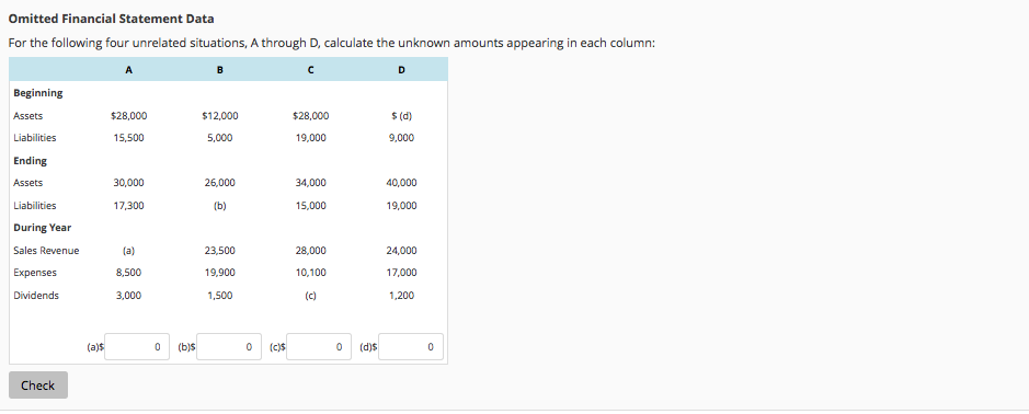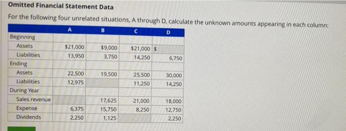 Solved Omitted Financial Statement Data For the following | Chegg.com