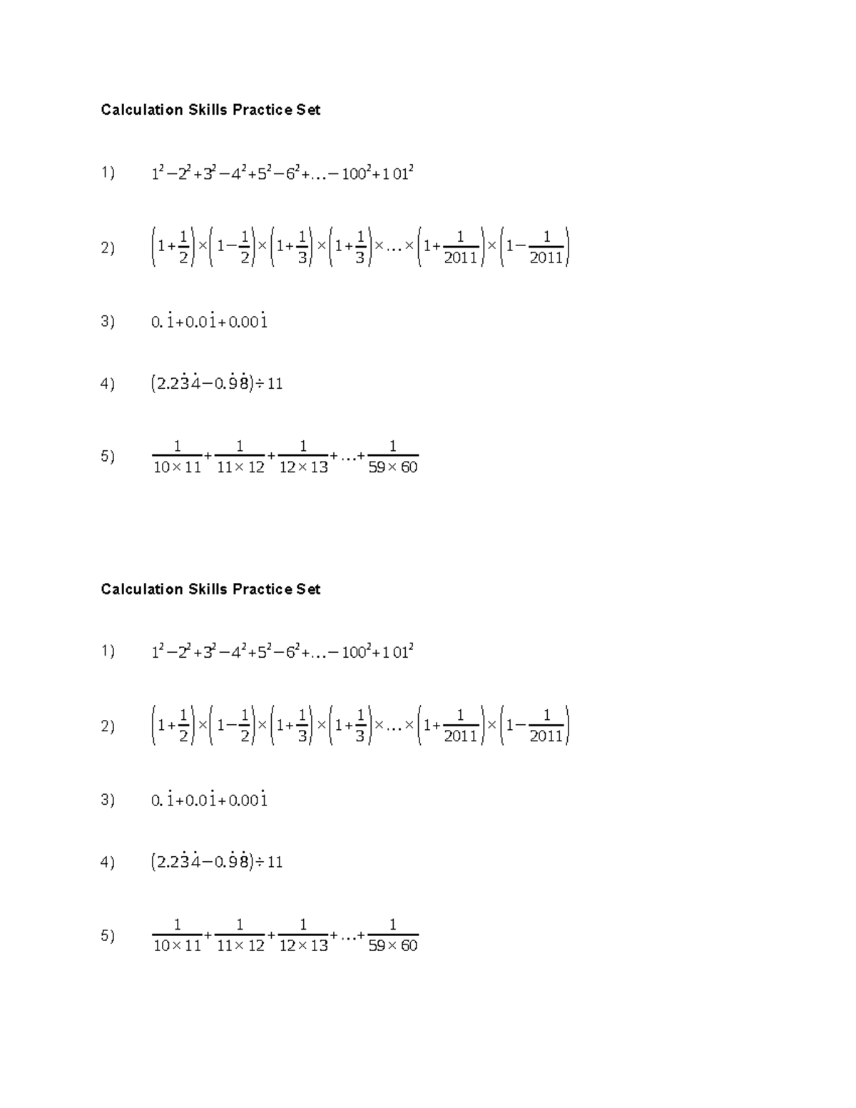 Calculation Skills Practice Set Part 1 - Calculation Skills Practice ...