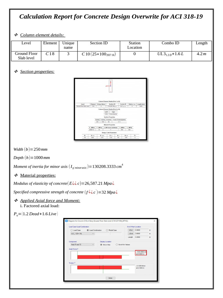 Concrete Design Calculation Report ACI 318-19 | PDF