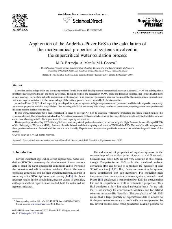 (PDF) Application of the Anderko–Pitzer EoS to the calculation of ...