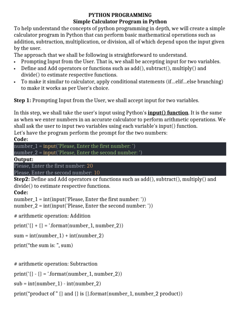 WEEK 1011 - Simple Calculator Program in Python | PDF | Arithmetic ...