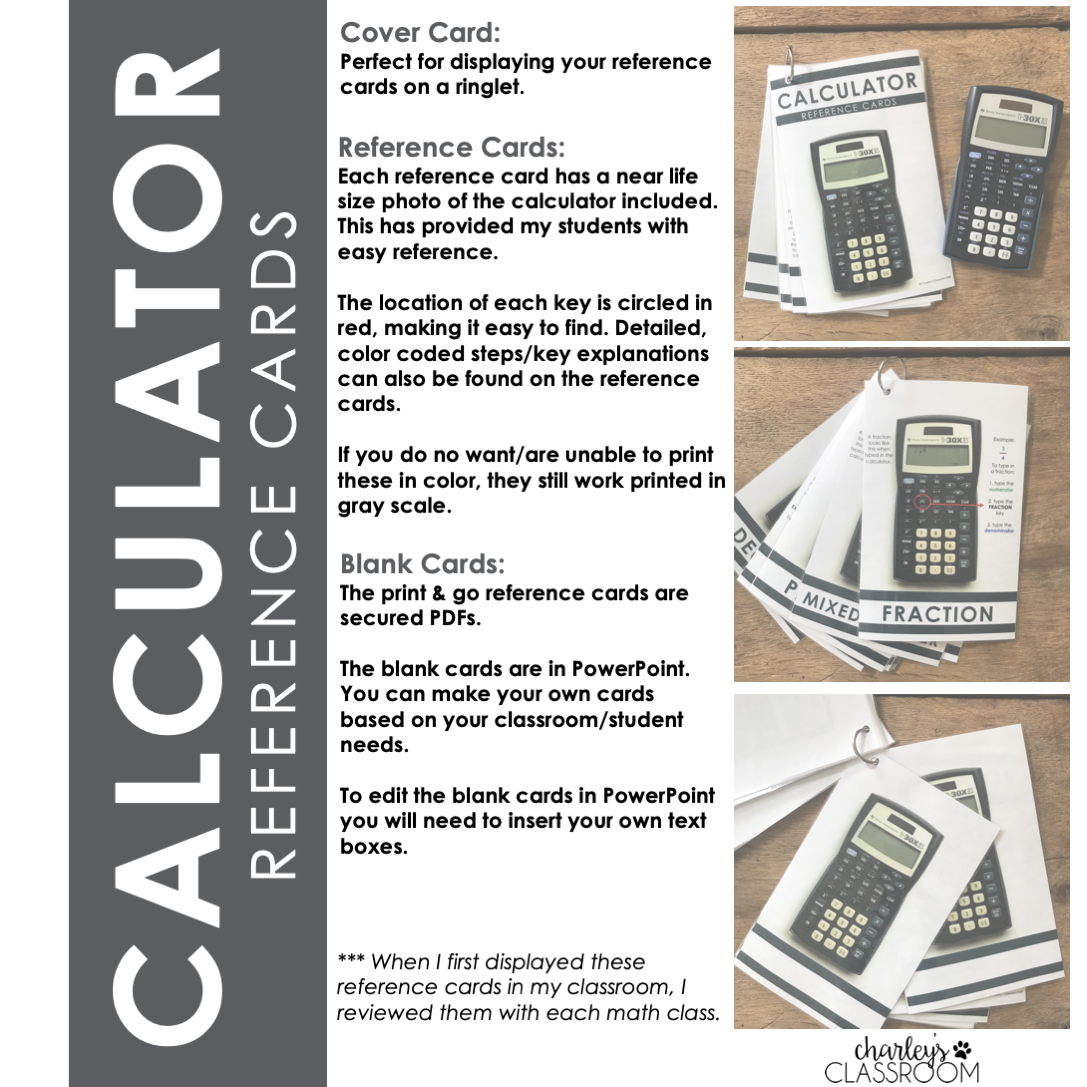 Calculator Reference Cards - Charley's Classroom