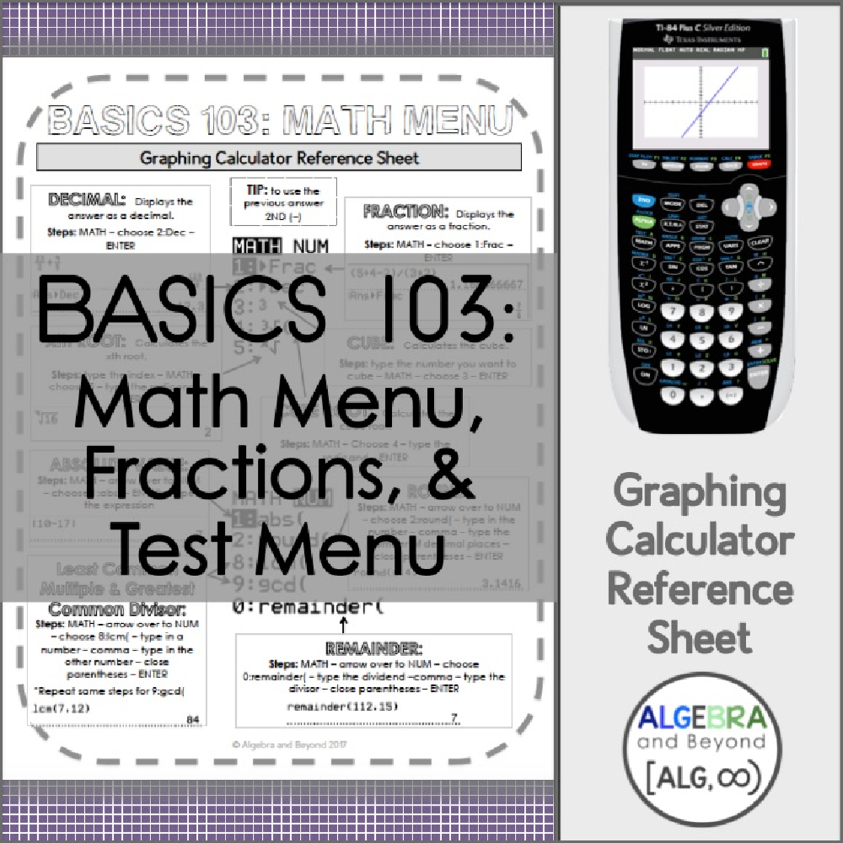 TI-84 Graphing Calculator Reference Sheets Bundle – Algebra and Beyond