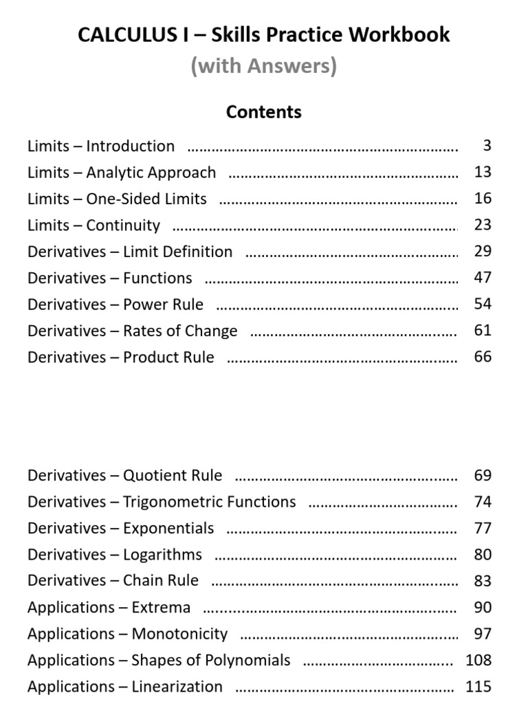 Calculus 1 Workbook Pdf