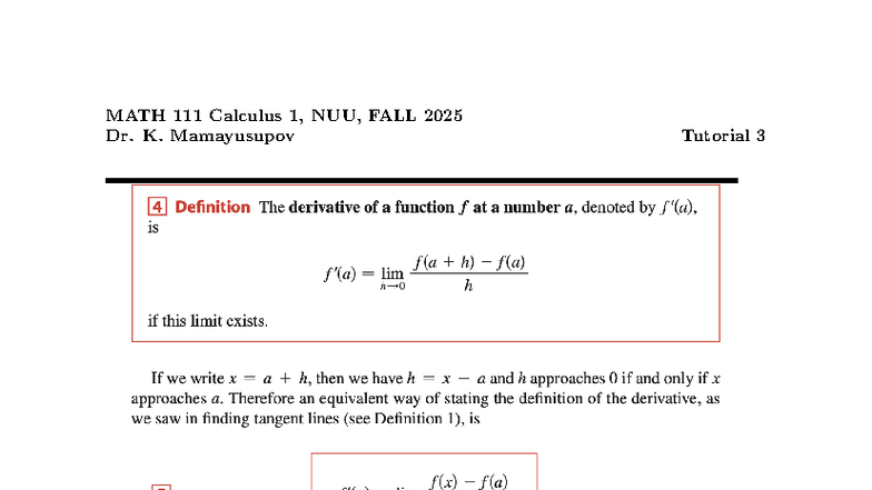 MATH 111 Calculus 1 Tutorial Solutions - Fall 2025 - Studocu