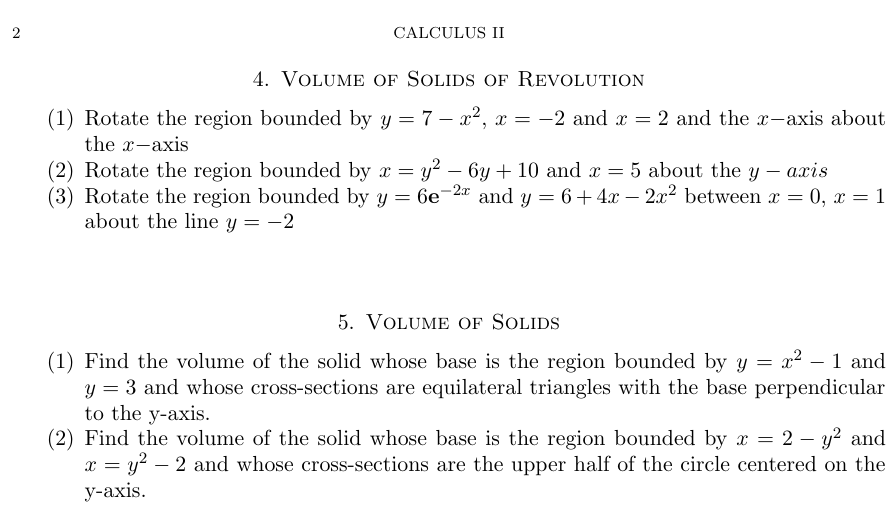 Calculus II (Math 166) Homework 1 - Volume and Length Problems | Course ...