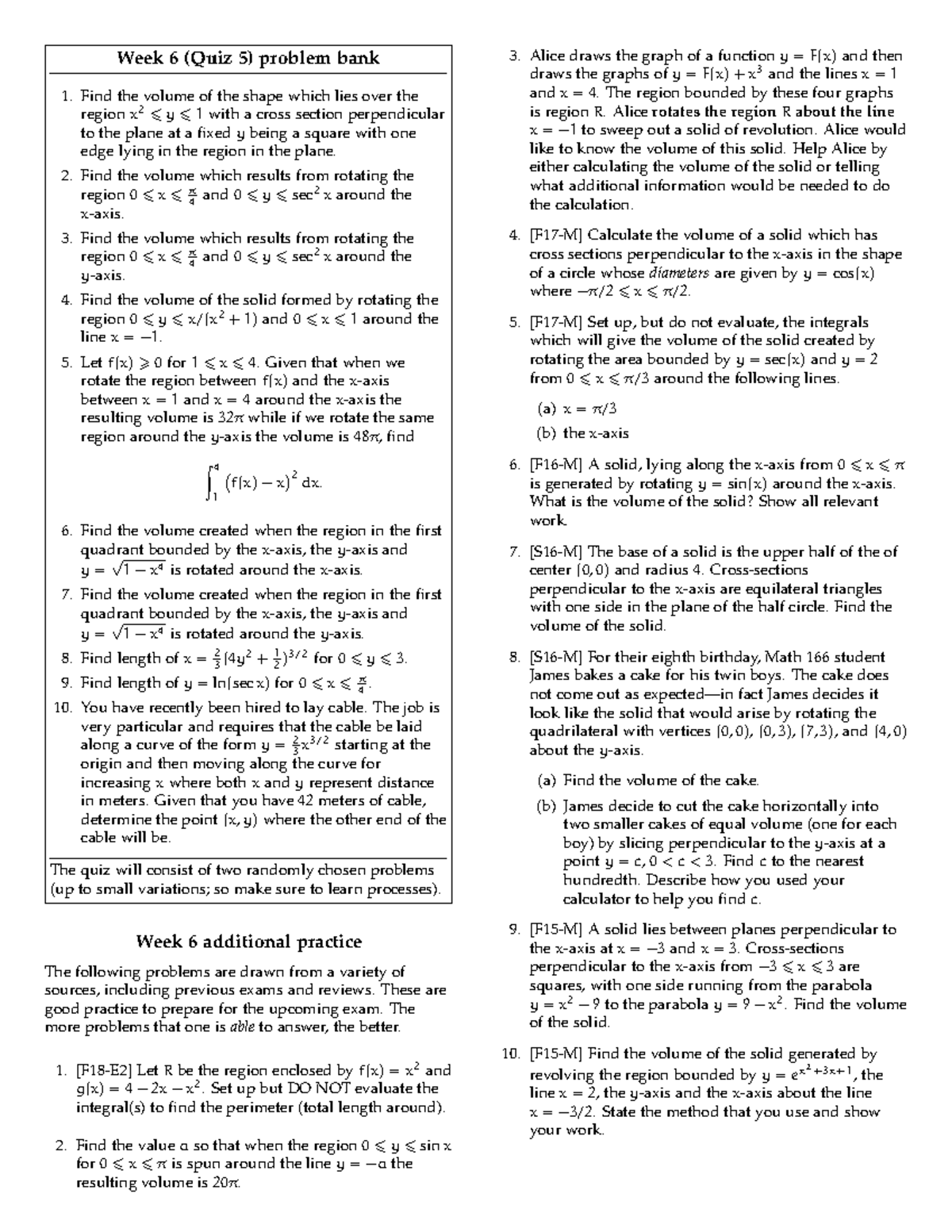 166 quiz05 - Calculus II quiz # 5 - Week 6 (Quiz 5) problem bank Find ...