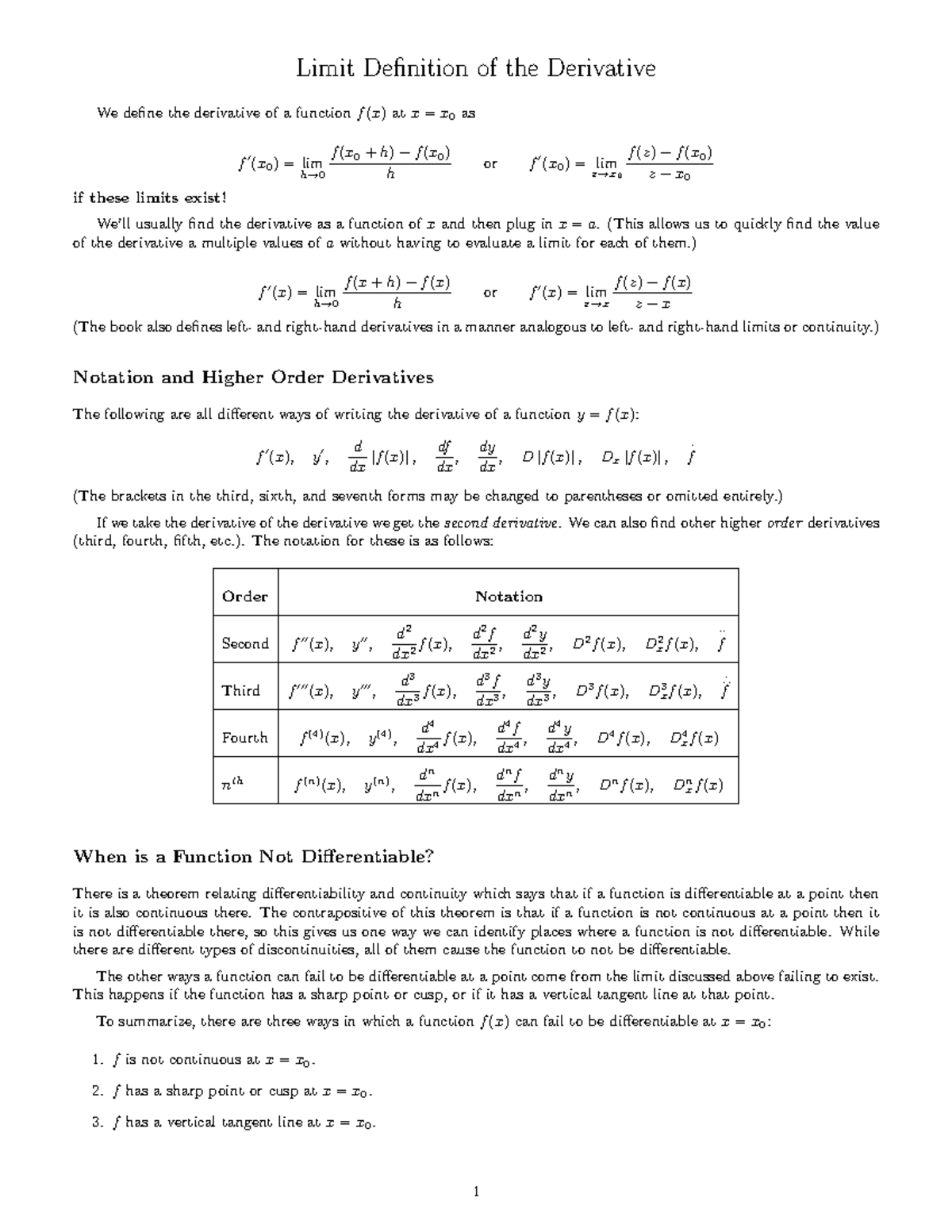 Differentiation Notes for Calculus II (MATH 201) - Studocu