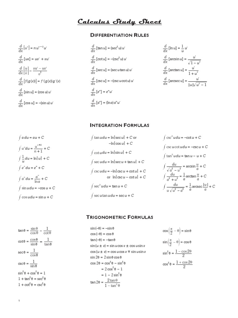Differential Calculus Cheat Sheet Pdf at Jack Maughan blog
