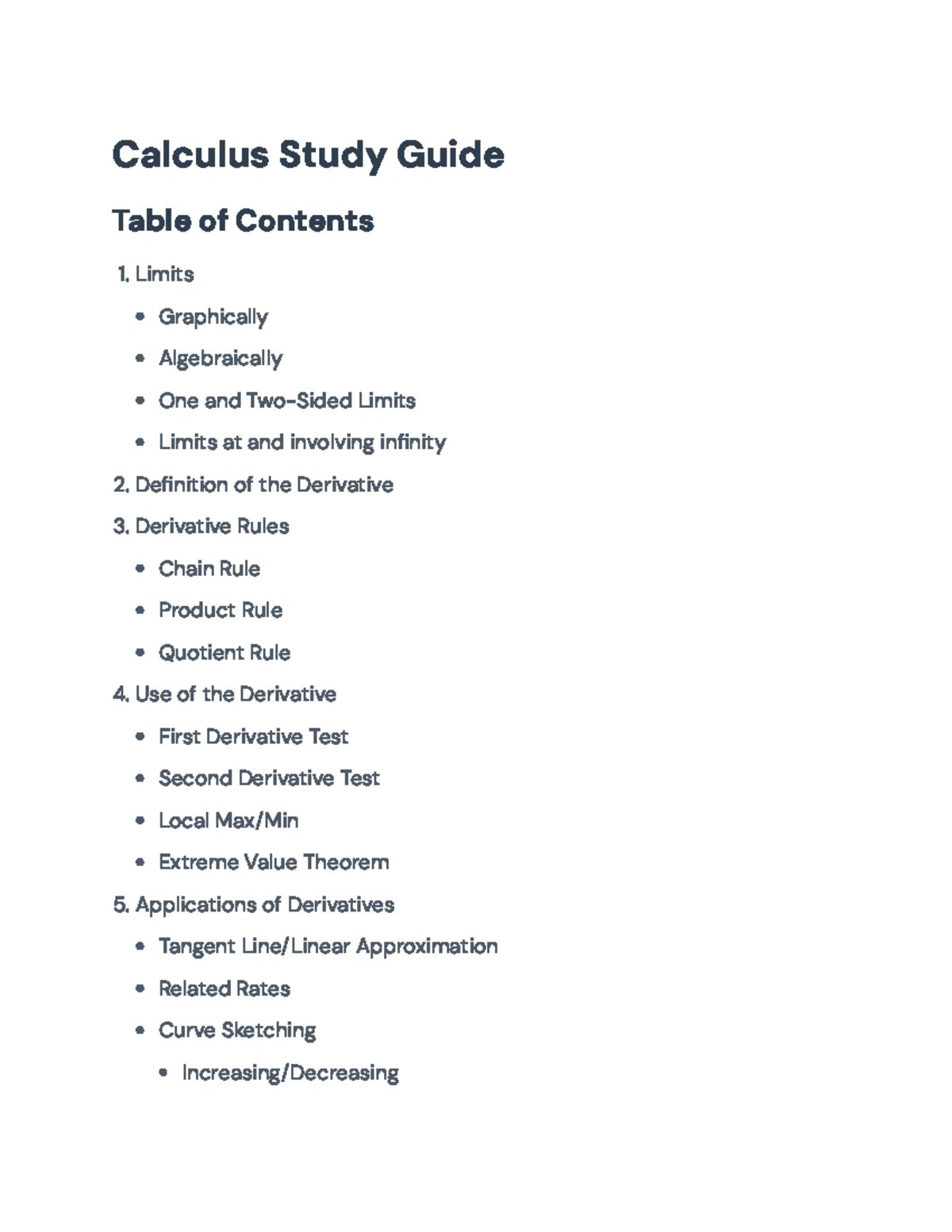 Master Calculus with this Comprehensive Study Guide: Key | Course Hero