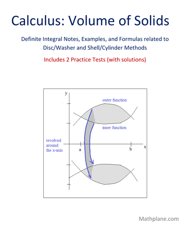Calculus Definite Integrals: Volume of Solids | Teaching Resources