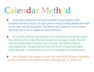 Calendar Method | PPTX | Birth Control | Reproductive Health