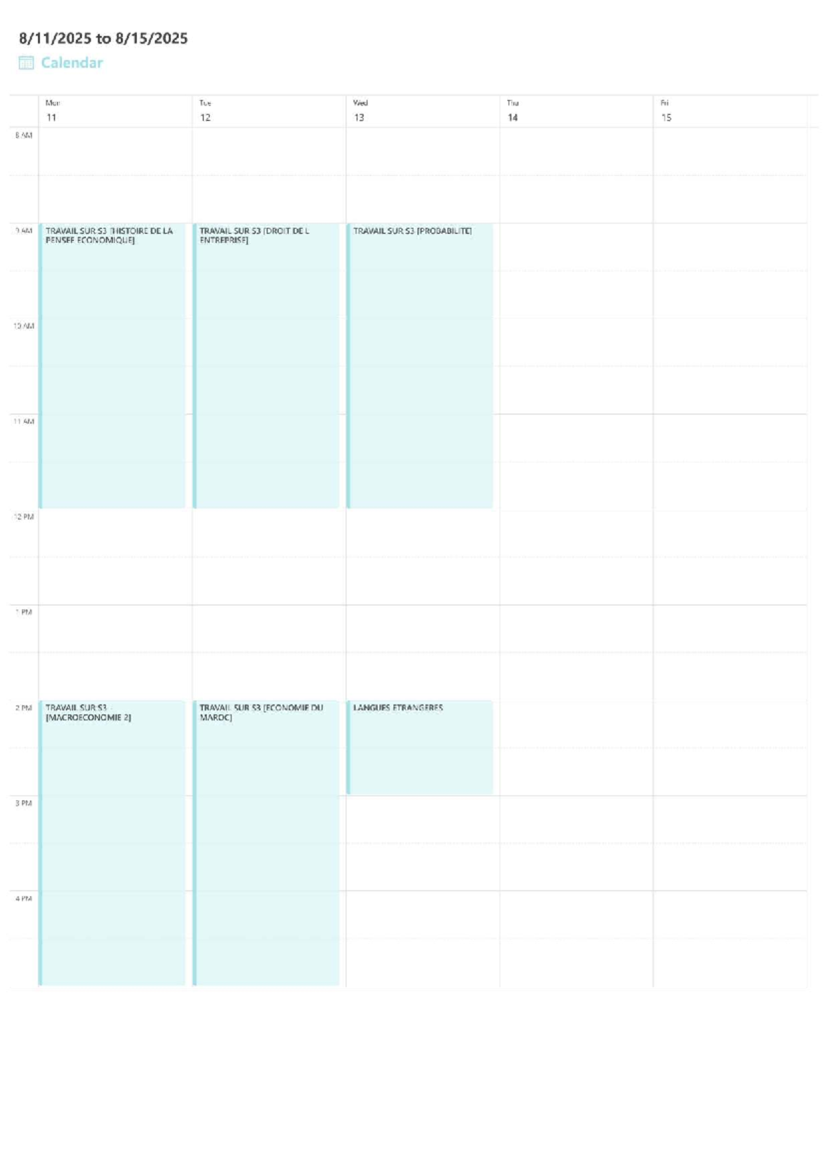 S3 Calendar for First Week: Mon-Fri Schedule - Studocu