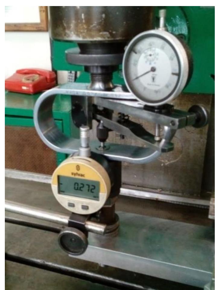 Strain gauge for measuring the deflection. Instrument calibration (a ...