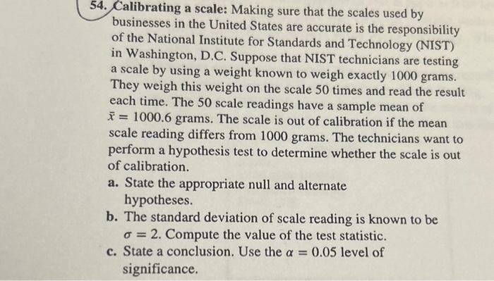 Solved 54. Calibrating a scale: Making sure that the scales | Chegg.com