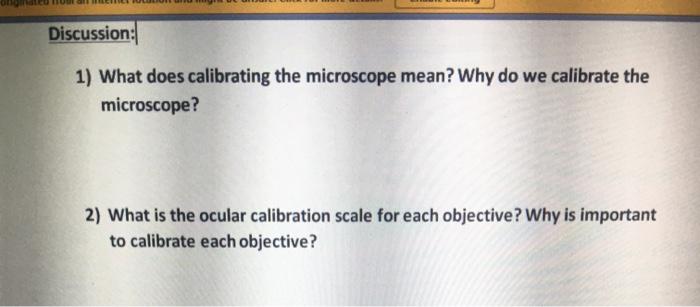 Solved Discussion: 1) What does calibrating the microscope | Chegg.com