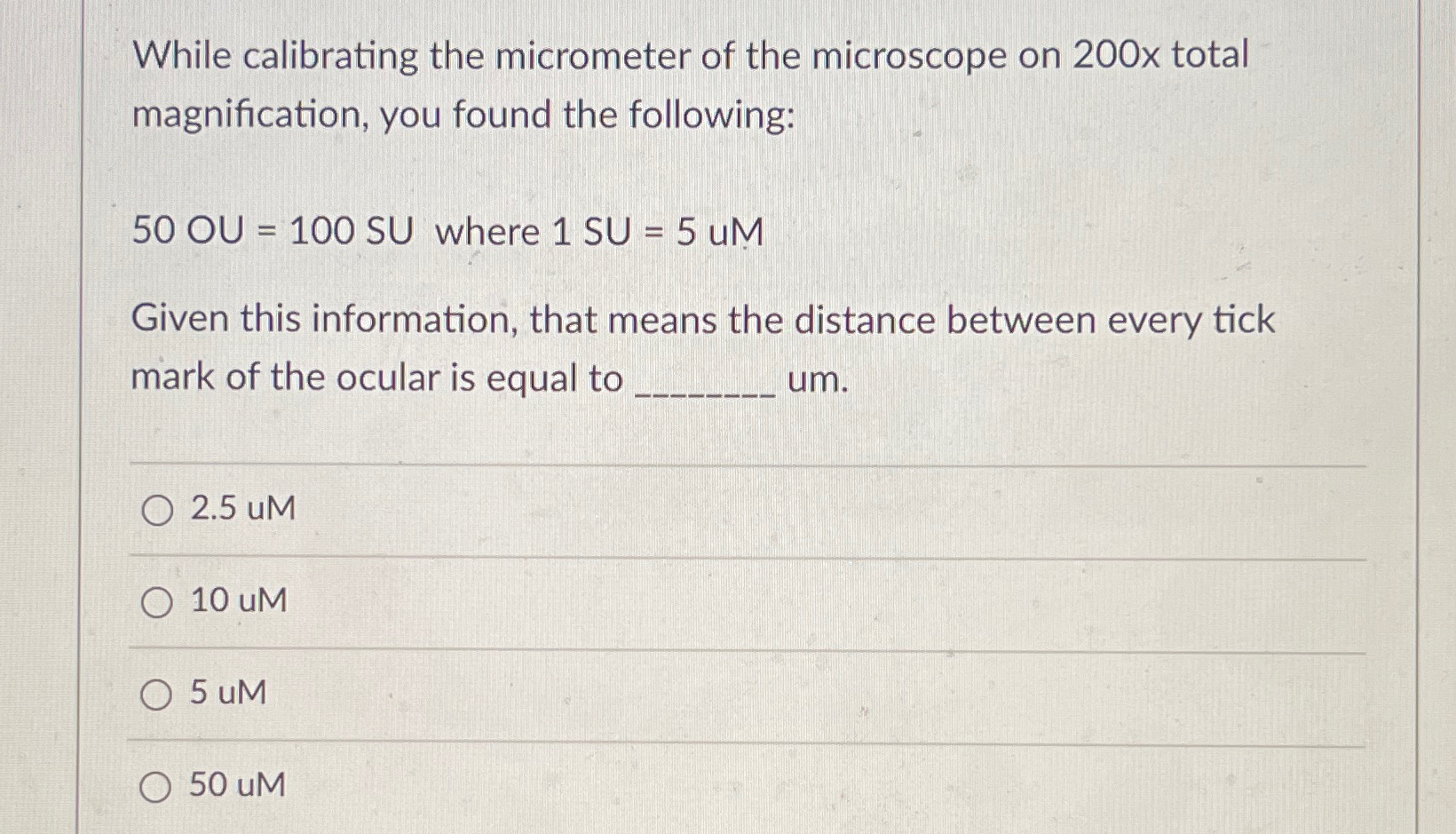 Solved While calibrating the micrometer of the microscope on | Chegg.com