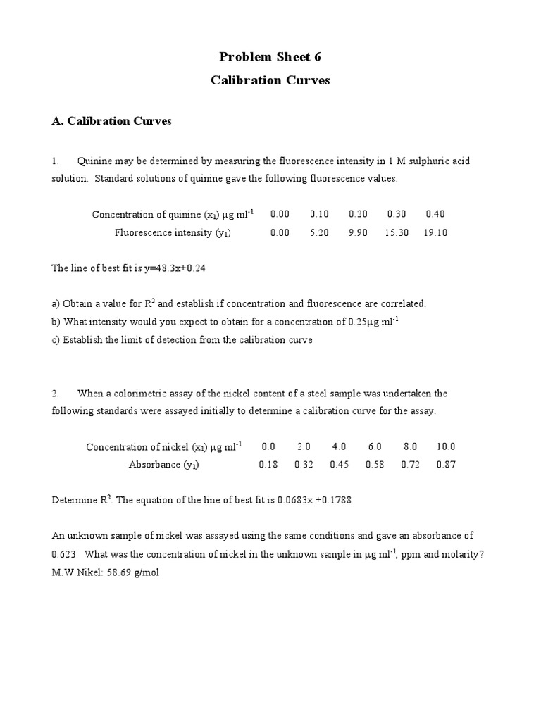 Problem Sheet 6 Calibration | PDF | Analysis | Chemistry