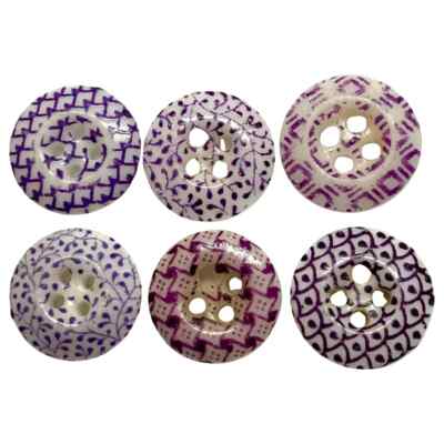 6 Antique Purple China Calico Buttons ~ Uncommon Identified Patterns | eBay