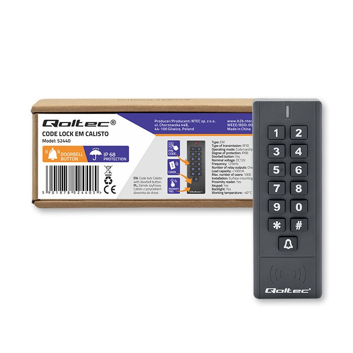 Incuietoare cu combinatie, Qoltec, CALISTO cu cititor RFID, cod, card ...