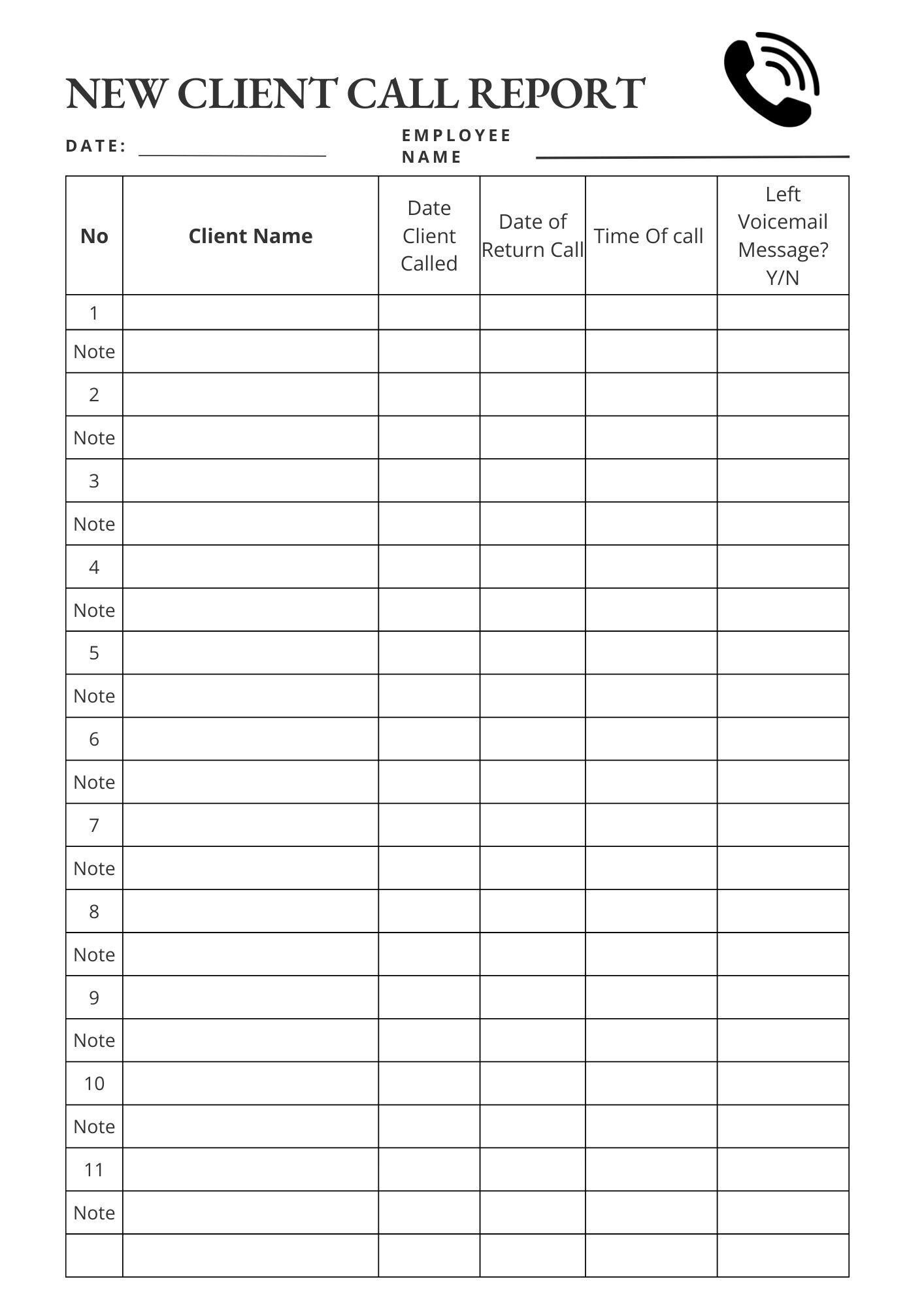 Client Call List Template - PDFSimpli