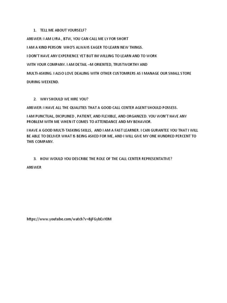 Call Center Interview Questions and Answers for No Experience - YouTube