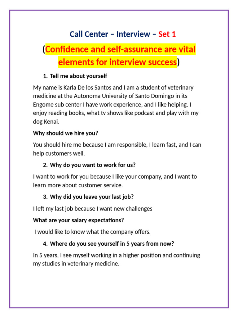 Call Center Agent Mock Interview Tips - mkoaiekq - Studocu