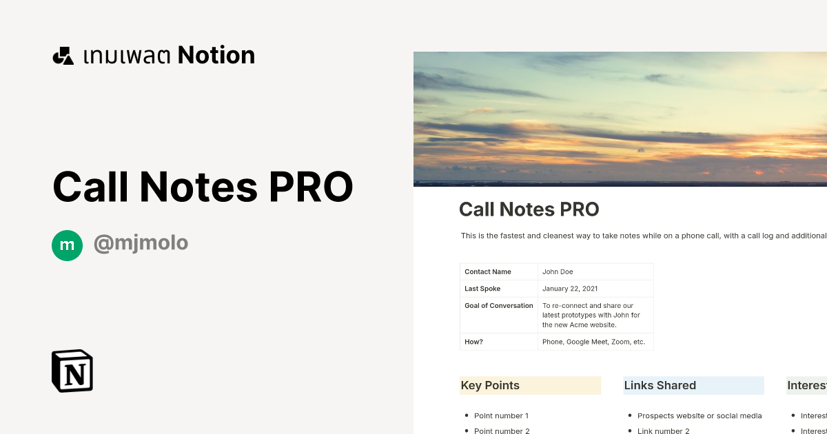 เทมเพลต Call Notes PRO โดย Mike Moloney | มาร์เก็ตเพลส Notion