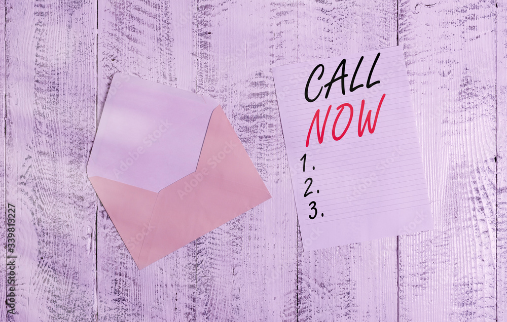 Inspiration showing sign Call Now. Word Written on To immediately ...