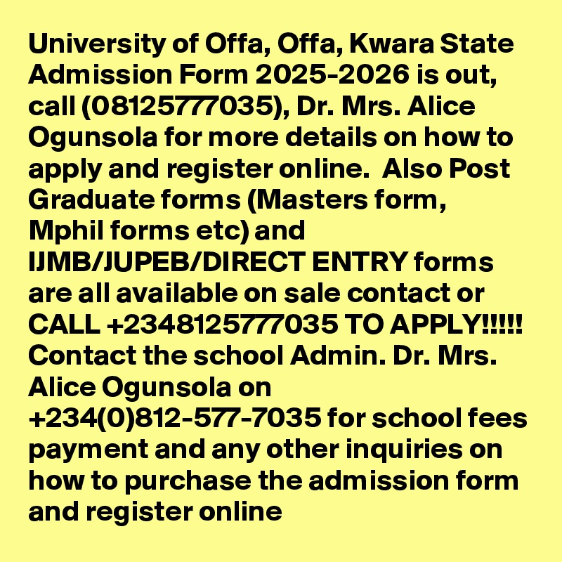 University of Offa, Offa, Kwara State Admission Form 2025-2026 is out ...