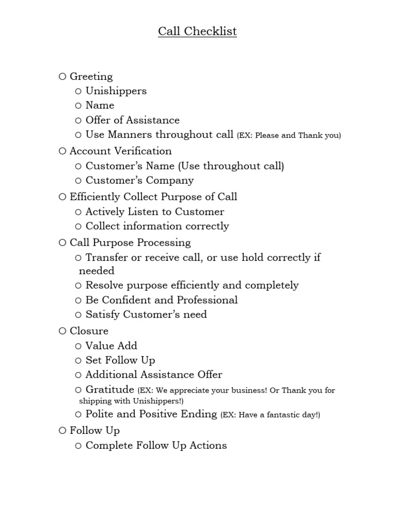 Call Checklist | PDF