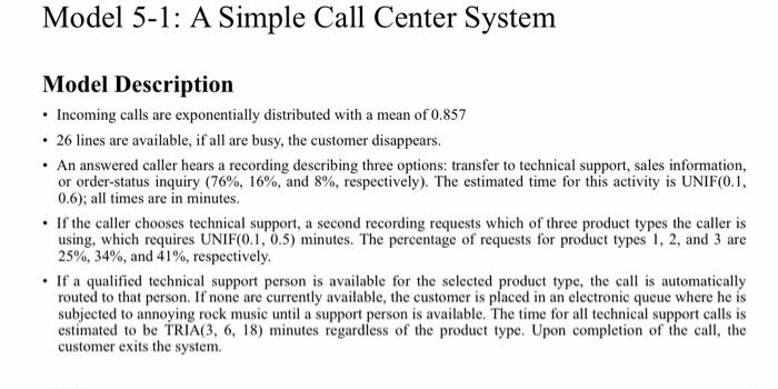 Model 5-1: A Simple Call Center System Model | Chegg.com