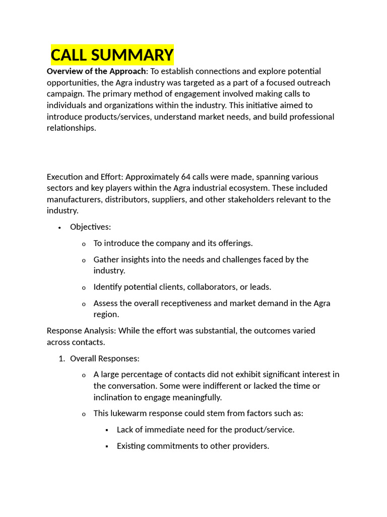 CALL SUMMARY Overview of The Approach | PDF | Human Communication ...