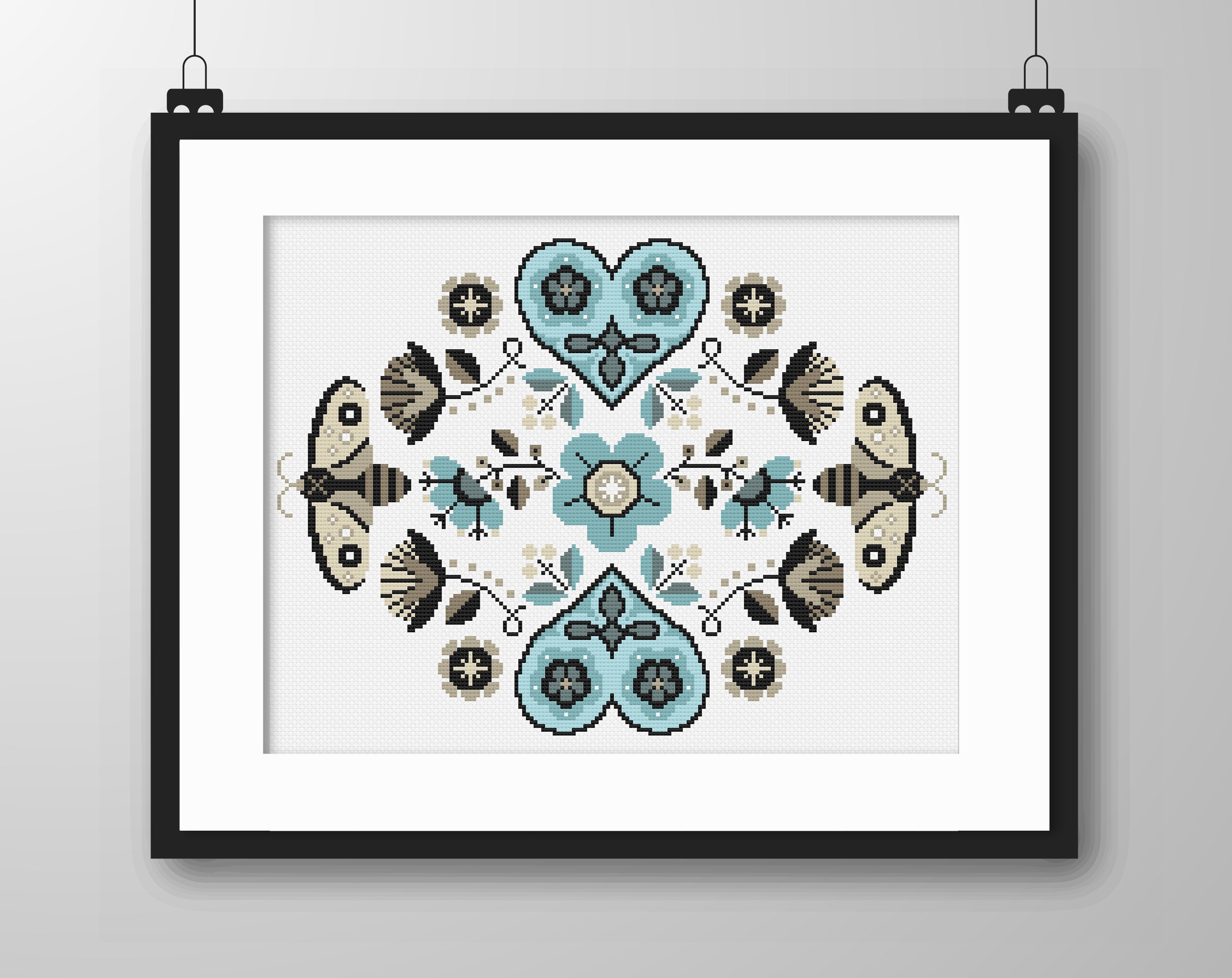 Cross Stitch Pattern Callico Hearts Flowers and Bees in Blue - Etsy