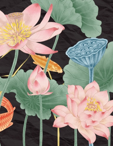 Black Mi Zi Ge Line Notebook - Lotus and Carp - Chinese and Japanese ...
