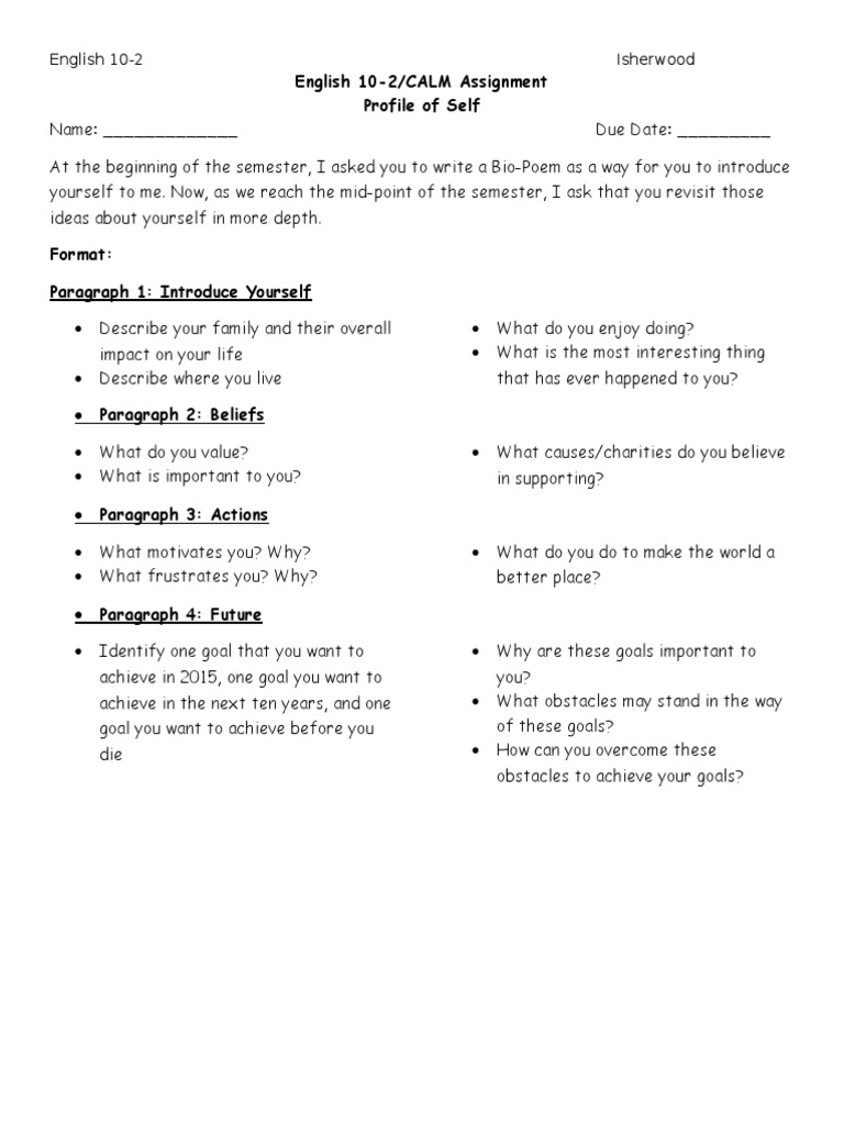 KNOW URSELF CALM 1ST ASSIGNMENT.docx - Assignment: Knowing Yourself 1 ...