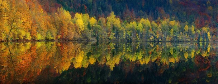 2000x774 / panoramas lake reflection nature fall water forest landscape ...