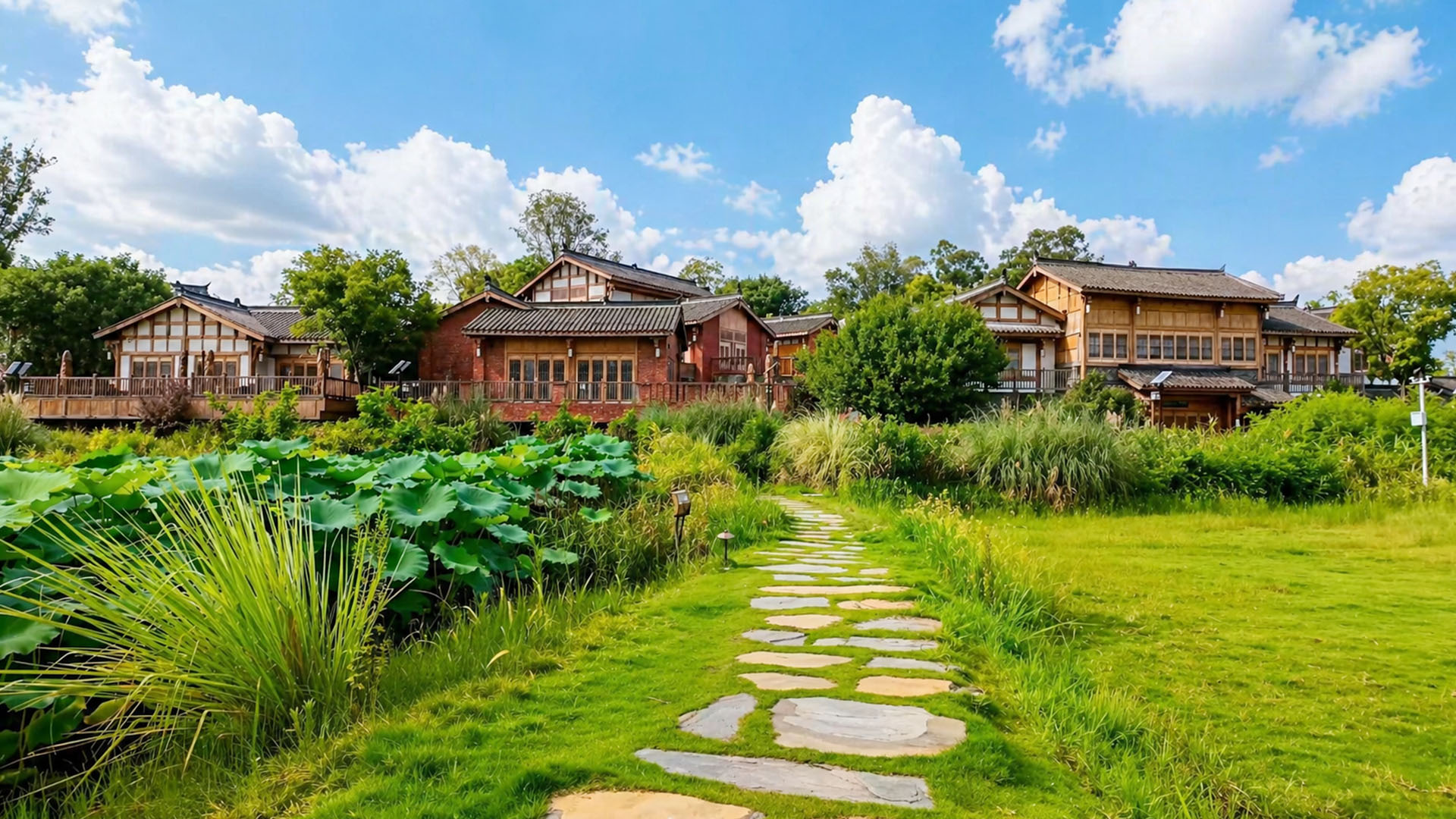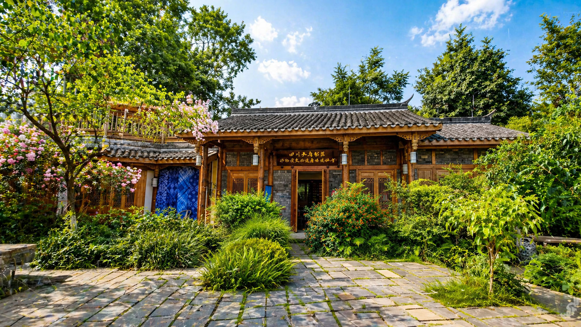 A hidden garden house in China surrounded by calm natural scenery