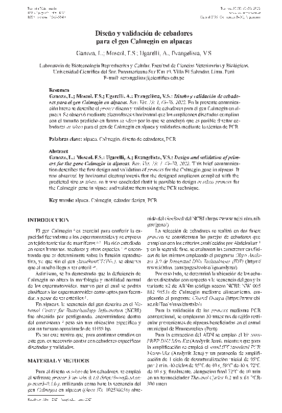 (PDF) Diseño y validación de cebadores para el gen Calmegin en alpacas