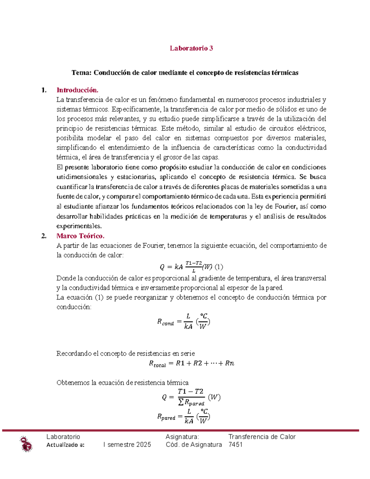 Laboratorio 3: Conducción de Calor y Resistencias Térmicas - Cód. 7451 ...