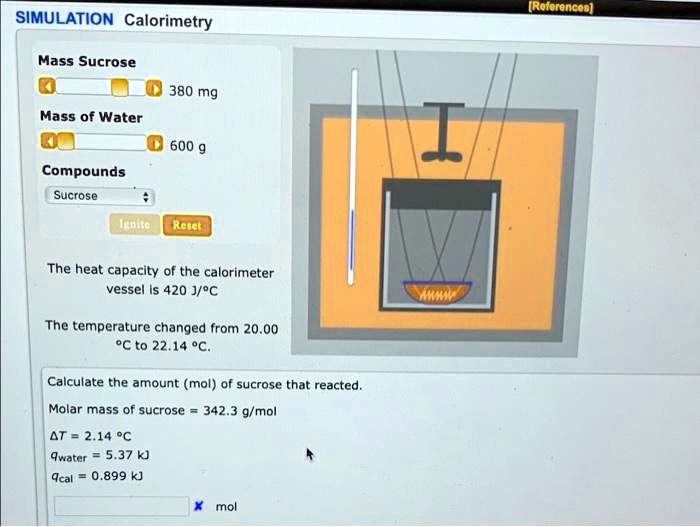 Solved [Rererences SIMULATION Calorimetry Mass Sucrose 380 | Chegg.com